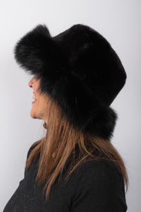 Feel spectacular in this luxurious traditional mink hat. The rich fox trim provides elegancy at its finest. The black on black creates a smooth blend between the combination of mink and fox. Whether it's paired with a fur coat, puffer, or a t-shirt, this hat ties together any outfit. A great gift item.