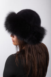 Feel spectacular in this luxurious traditional mink hat. The rich fox trim provides elegancy at its finest. The black on black creates a smooth blend between the combination of mink and fox. Whether it's paired with a fur coat, puffer, or a tshirt, this hat ties together any outfit. A great gift item.