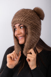 Toffee Mink Hat with Toffee Fox
