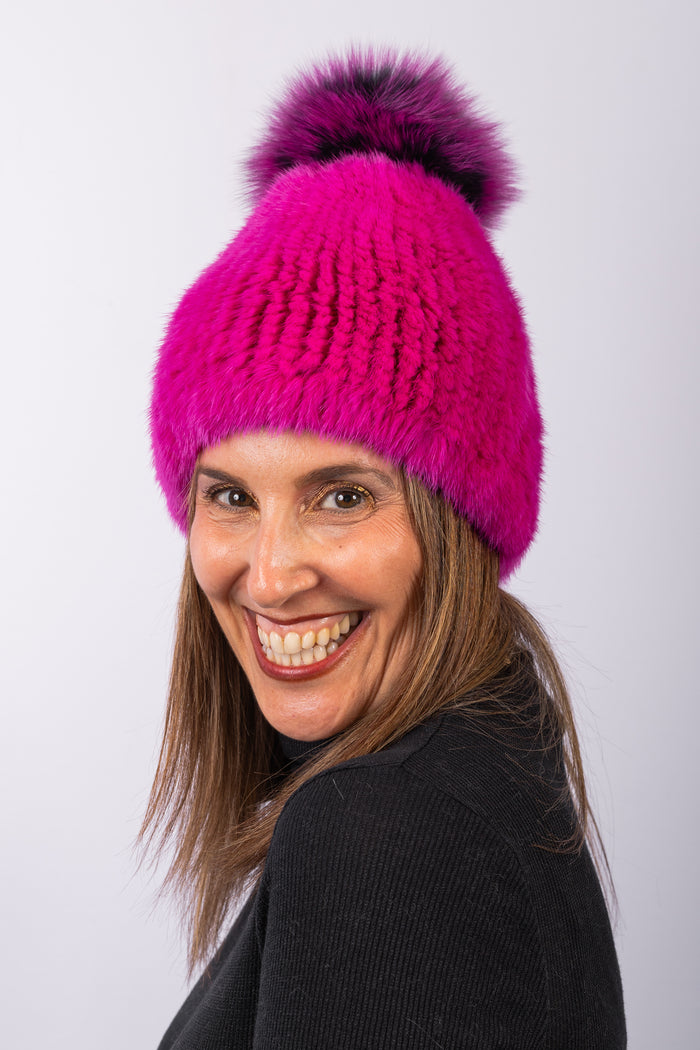 Hot Pink Mink Hat with Hot Pink/Black Fox