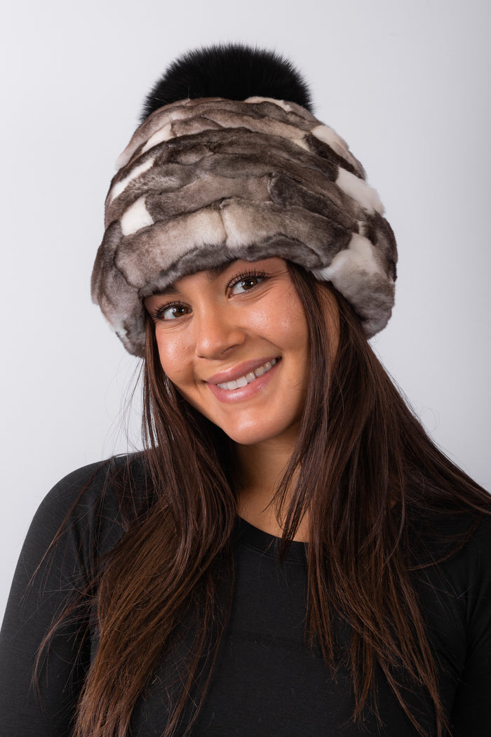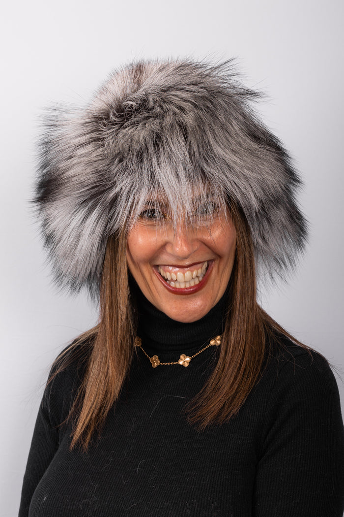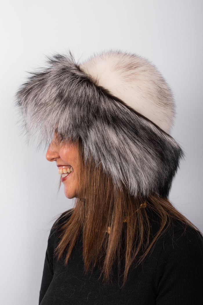 Natural Cross Mink Hat with Silver Fox Fur Trim
