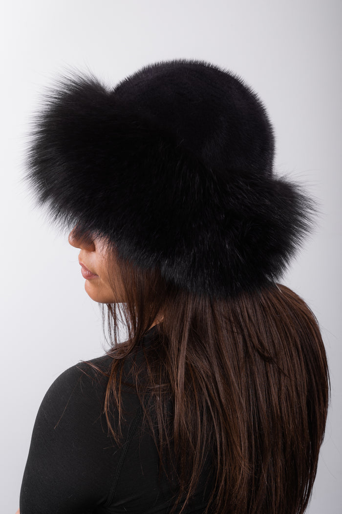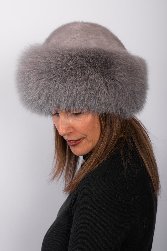 Natural Sapphire Mink Hat with Sapphire Fox Fur Trim