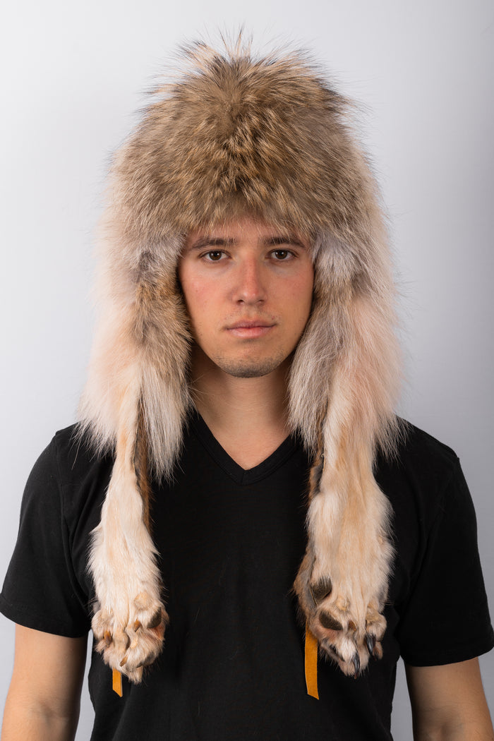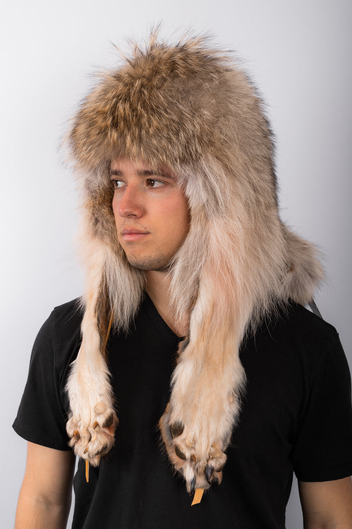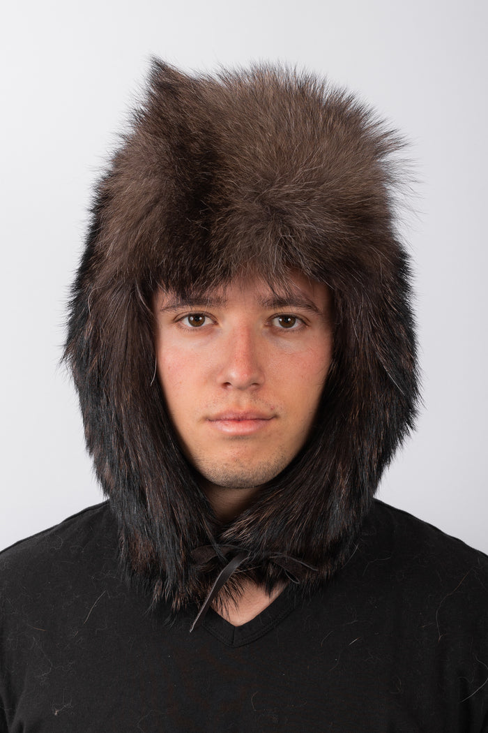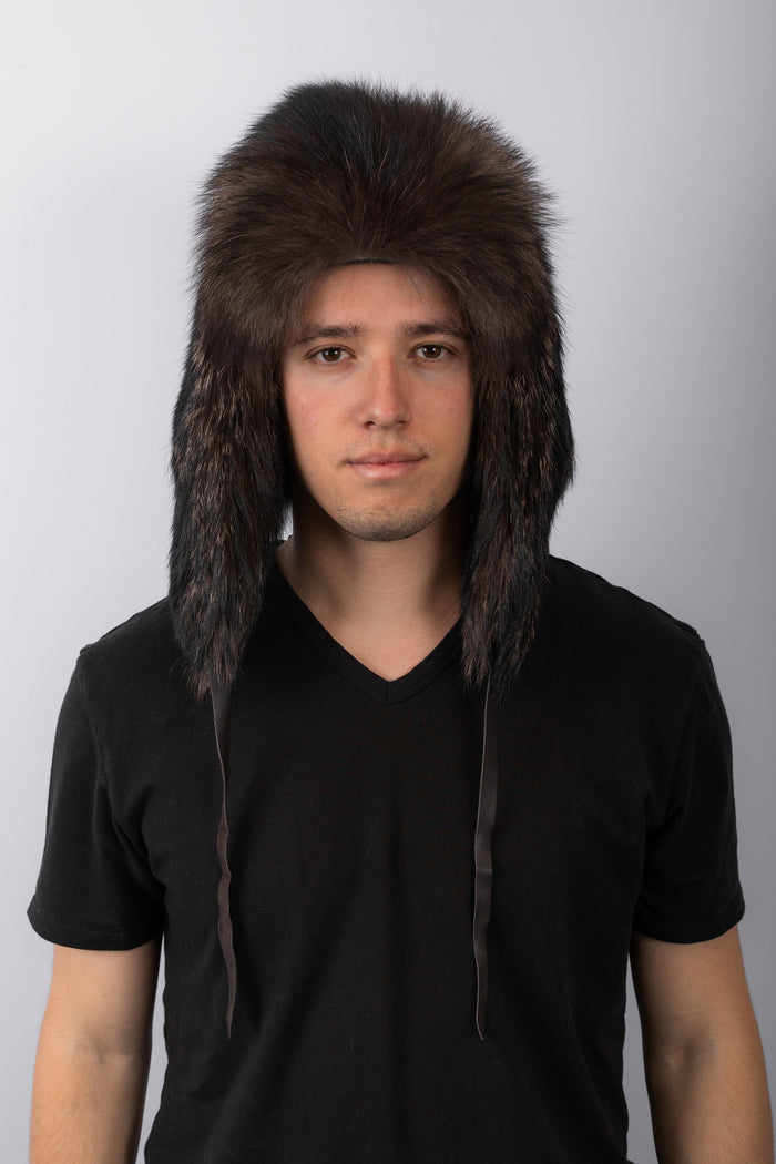 Natural Black Timberwolf Musher Hat with Tail