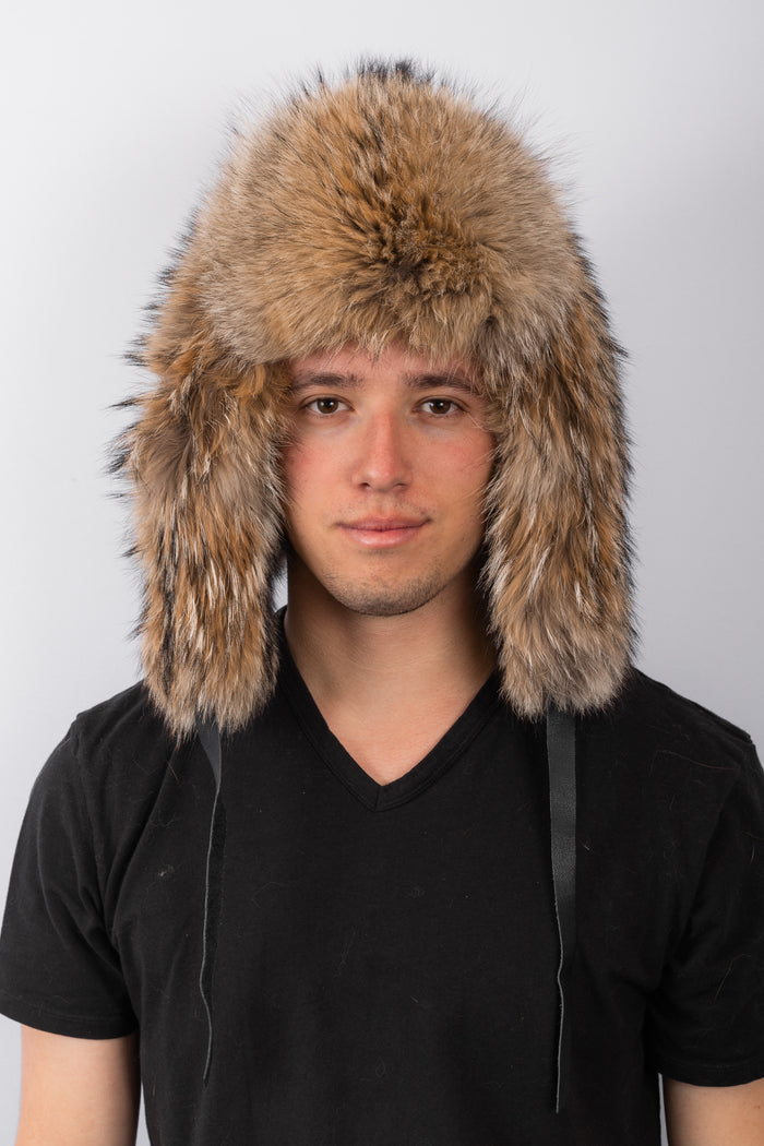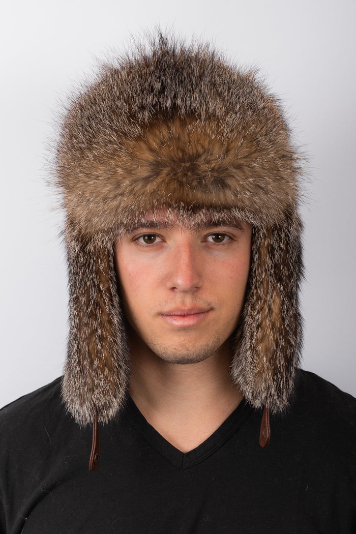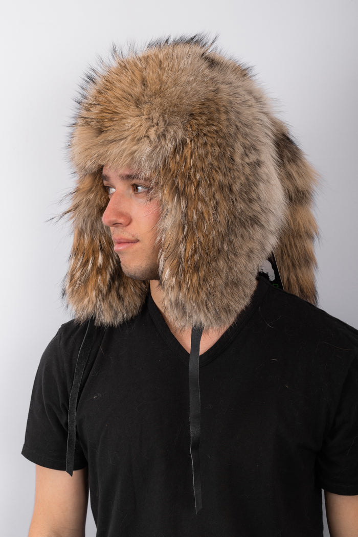 Natural Beaver Musher Hat with Canadian Lynx Fur Trim