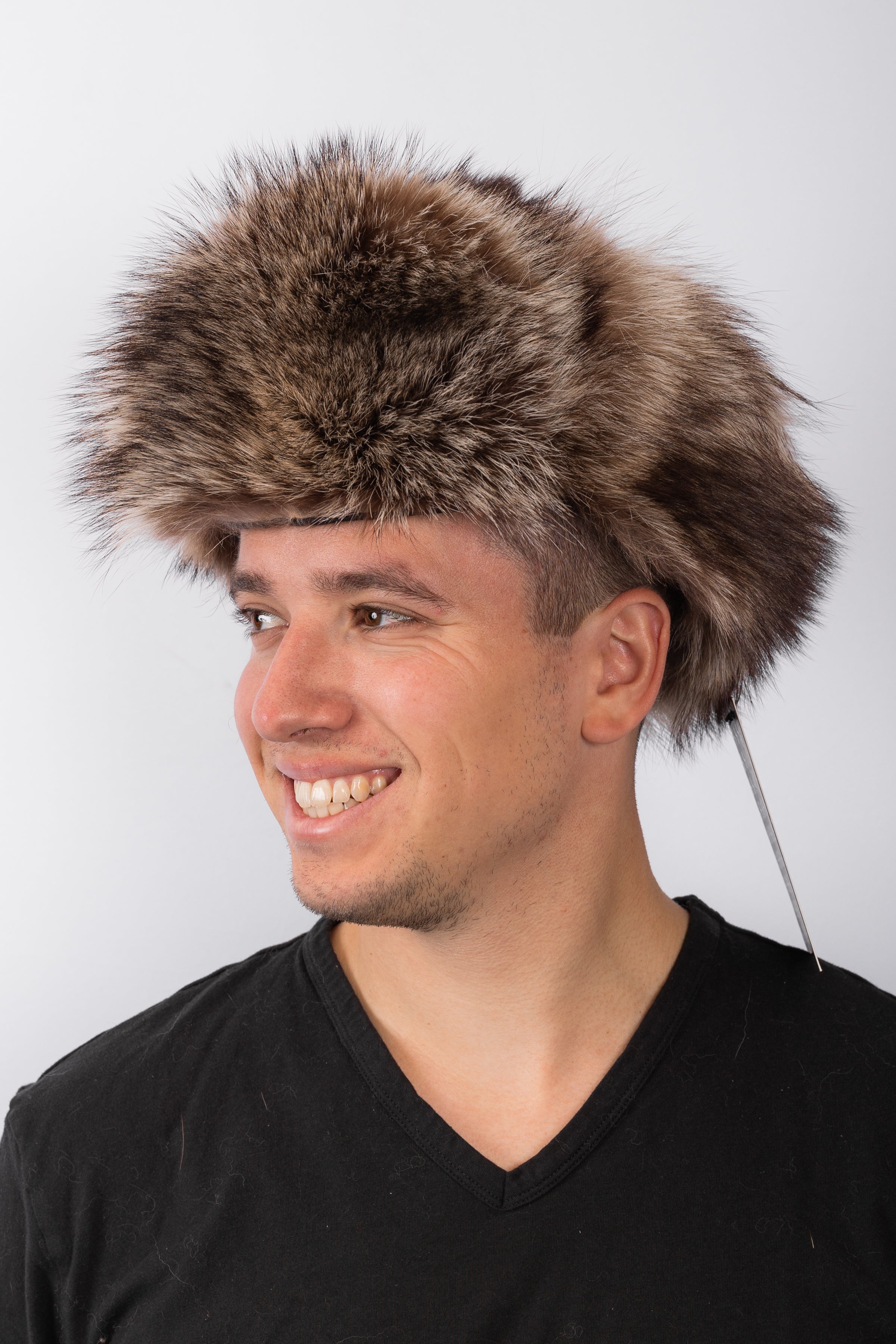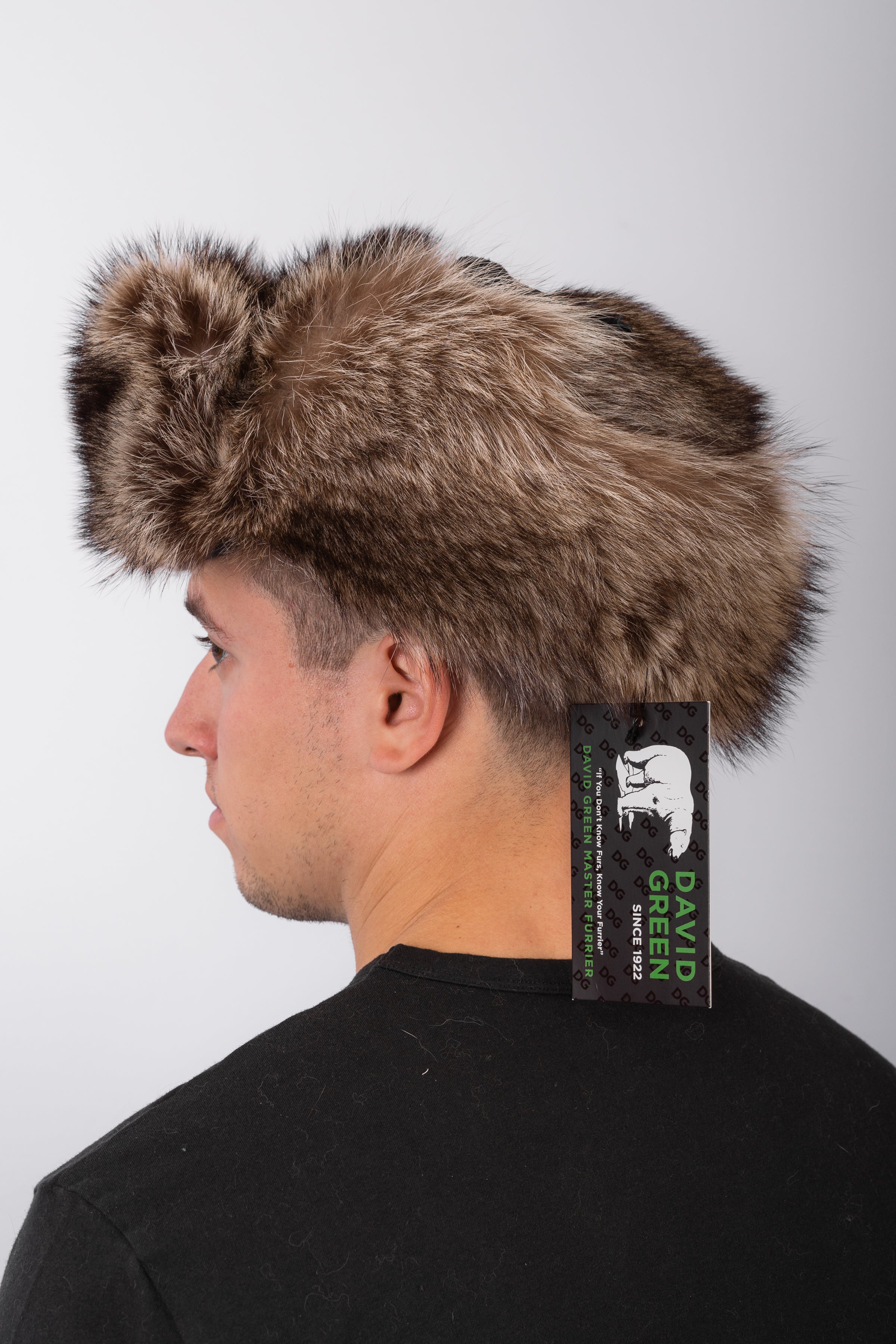 Stay warm in style with this luxurious fur trooper hat. Crafted from premium raccoon, it features adjustable ear flaps and a fold-up back neck piece for versatile comfort and protection in any weather. The perfect blend of function and timeless winter elegance.