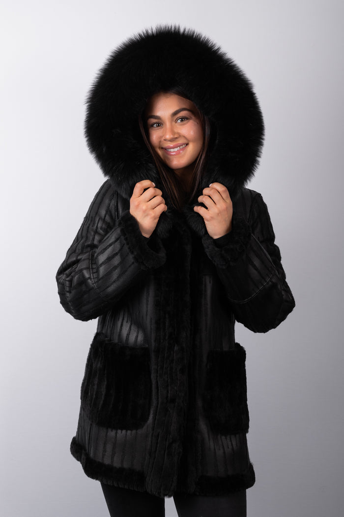 Black Onyx Shearling Lamb Jacket with Black Fox Fur Trim
