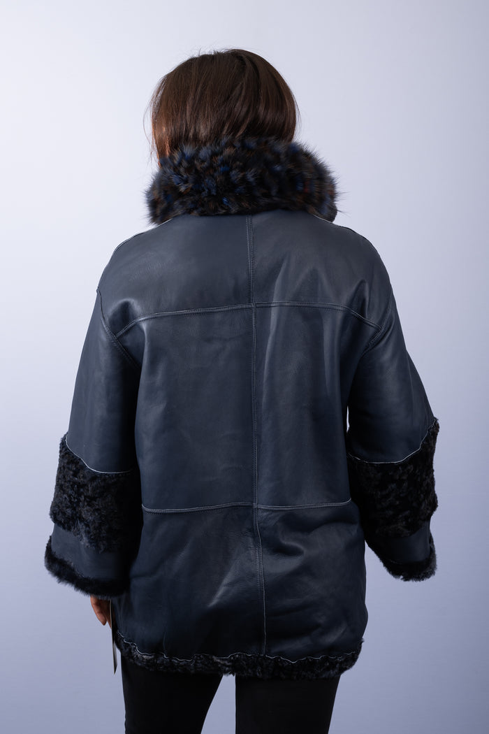 Navy Shearling Lamb Jacket with Multi Russian Sable Fur Trim