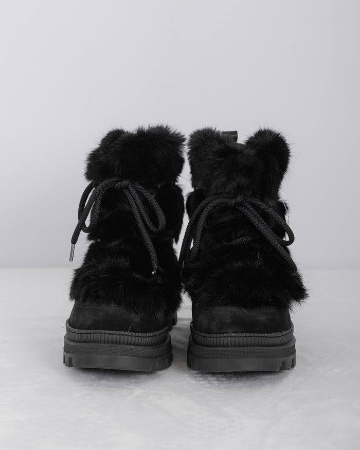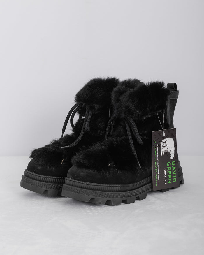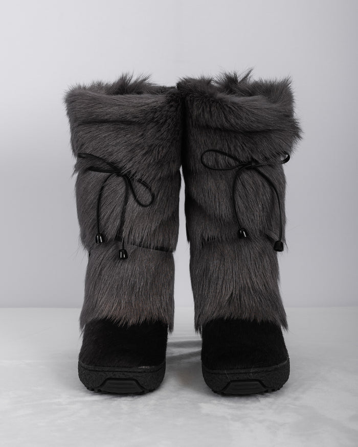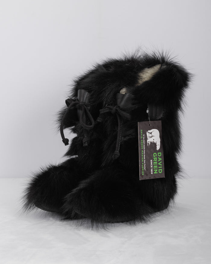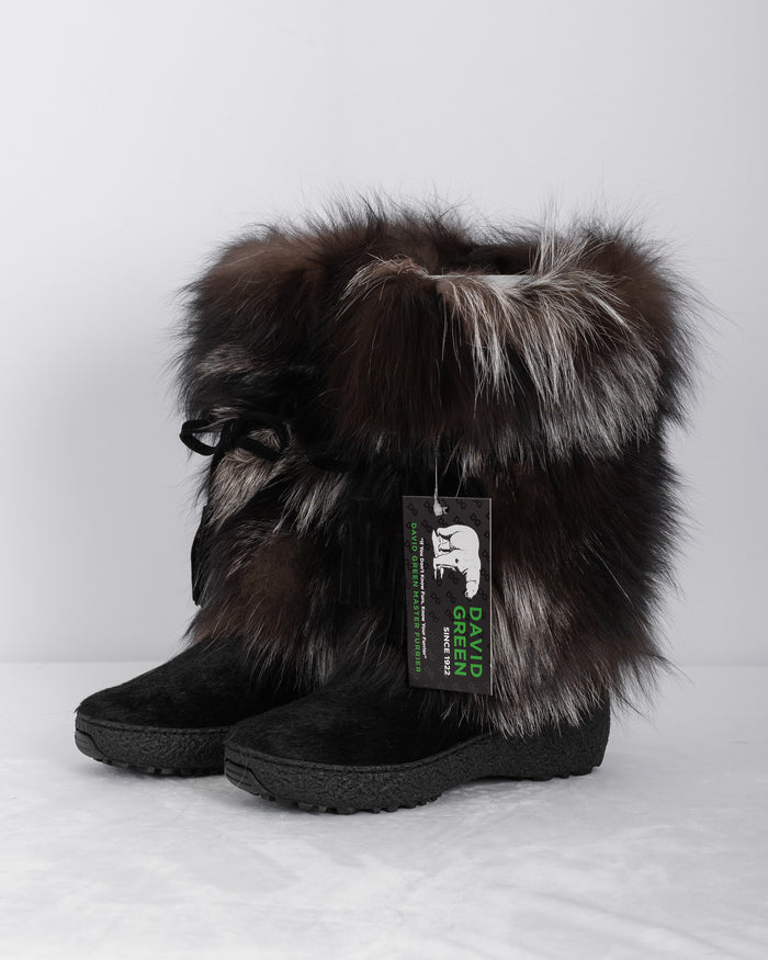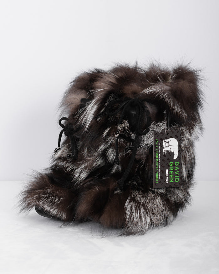 Natural Silver Fox/Black Calfskin Boots - Short