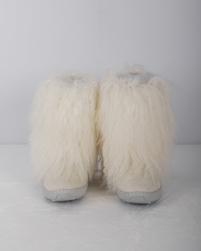 White Mongolian Lamb/White Calfskin Boots