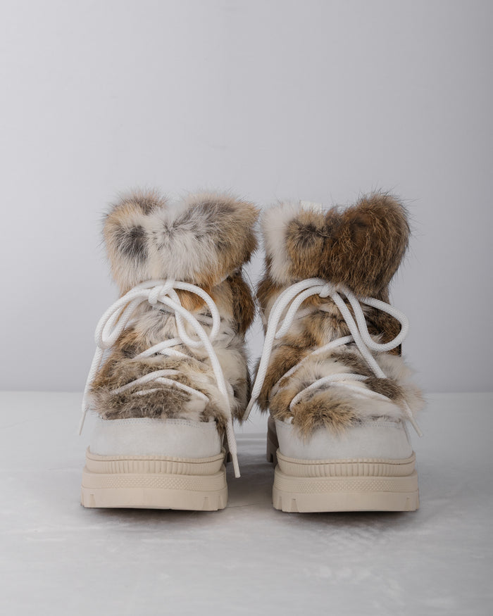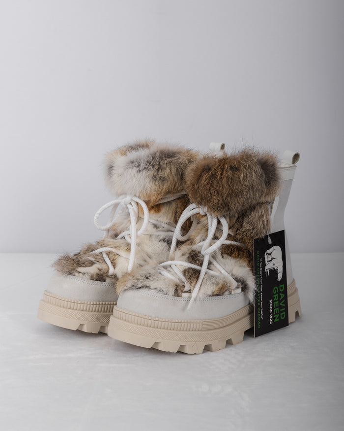 White/Toffee Multi Rabbit/White Suede Boots