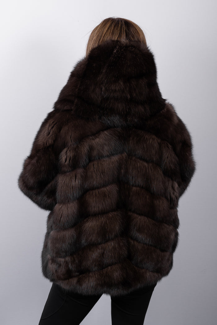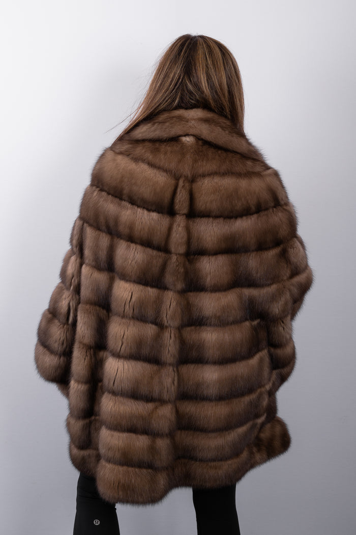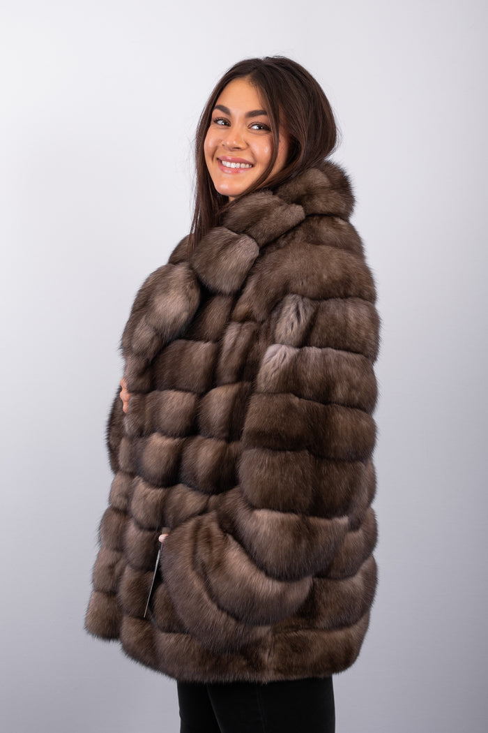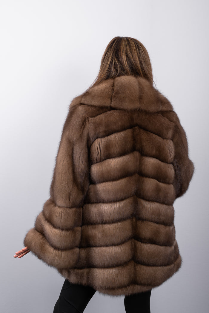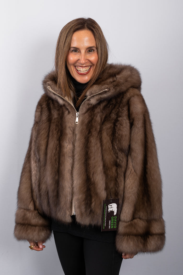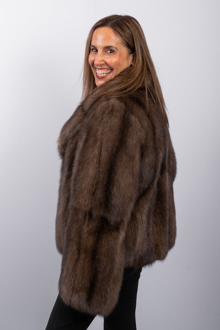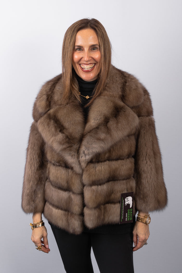 Natural Russian Sable Jacket with Champagne Mink Fur Trim