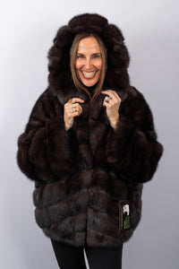 Elegant and timeless, this natural Russian sable jacket showcases the exceptional quality of the pelt, distinguished by its naturally luminous silver-tipped guard hairs. Crafted from plush, silky sable, the design is complemented by a refined hood that adds warmth while preserving a polished silhouette. Finished with discreet keska closures, the jacket offers seamless elegance and effortless luxury for both day and evening wear.
