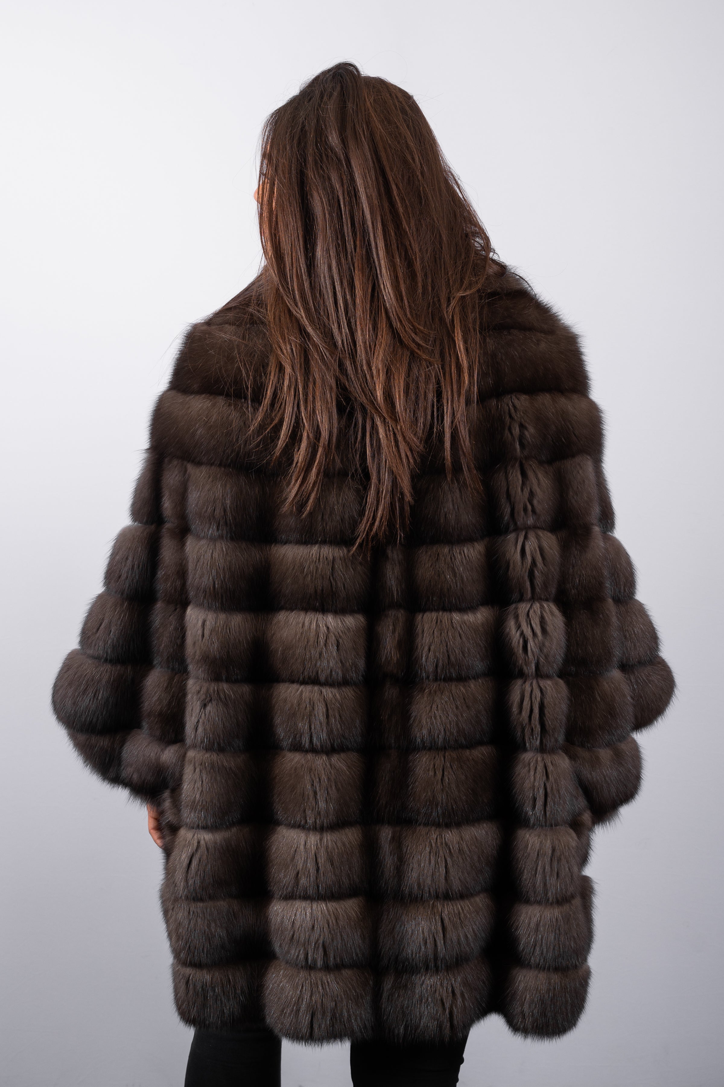 Elegant and timeless, this natural Russian sable jacket showcases the exceptional quality of the pelt, naturally highlighted by soft silver-tipped guard hairs. Crafted from plush, silky sable, the design features a classic notch collar, chic 3/4 sleeves, and a versatile free-size fit for effortless wear. Finished with discreet keska closures, the jacket offers seamless sophistication, lightweight comfort, and enduring luxury for both day and evening occasions.
