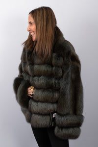 Refined and timeless, this Spruce Russian sable jacket is crafted from exceptionally plush, silky sable in a rich, spruce tone. The design features a sleek stand-up collar that creates a clean, modern silhouette while offering added warmth. Finished with discreet keska closures, the jacket delivers seamless elegance and exceptional comfort—an understated expression of enduring luxury.