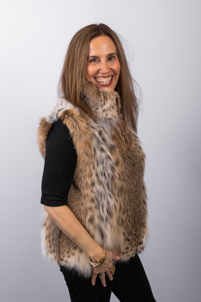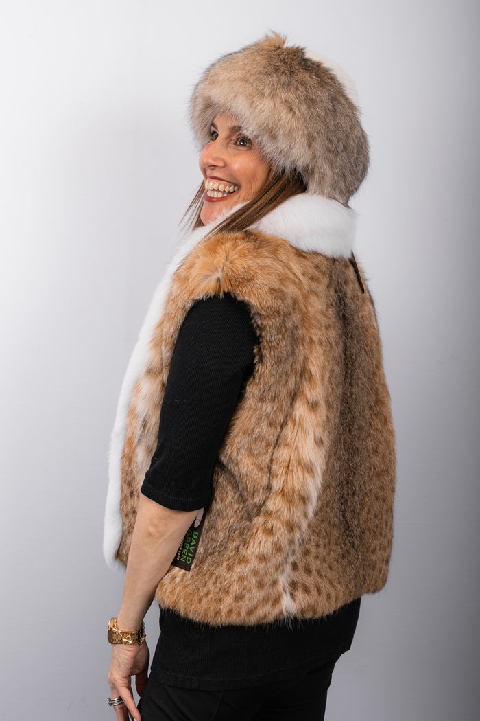 Natural Lynx Cat Vest with White Fox Fur Trim