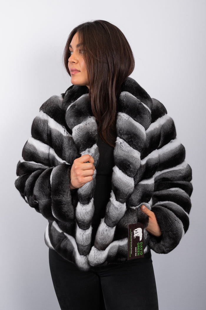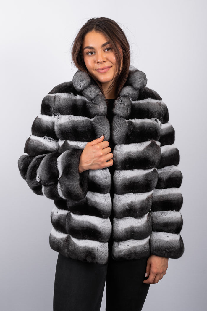 Natural Chinchilla/Black Mink Jacket - 3/4 Sleeve