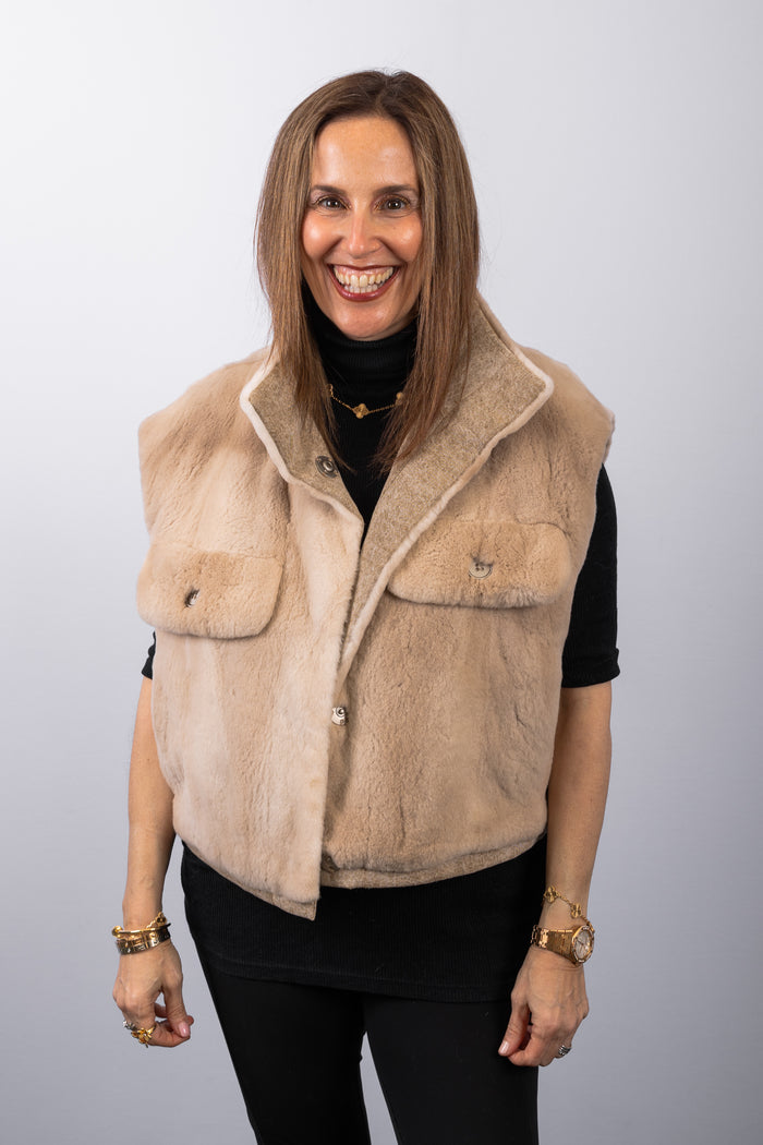Latte Plucked Mink/Stonewashed Denim Vest