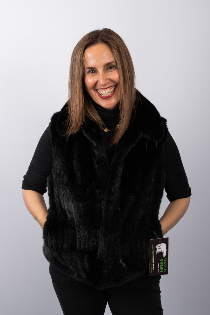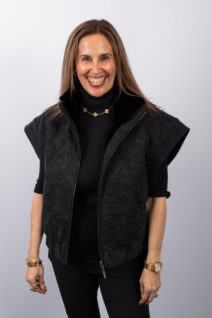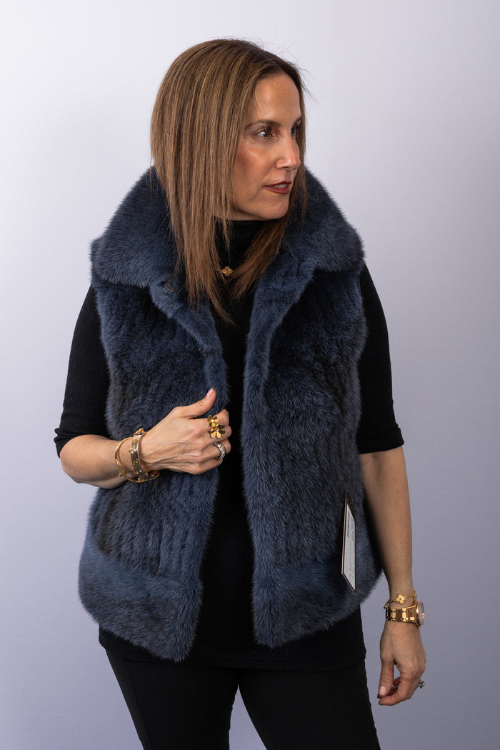 Black Plucked Mink/Stonewashed Denim Vest