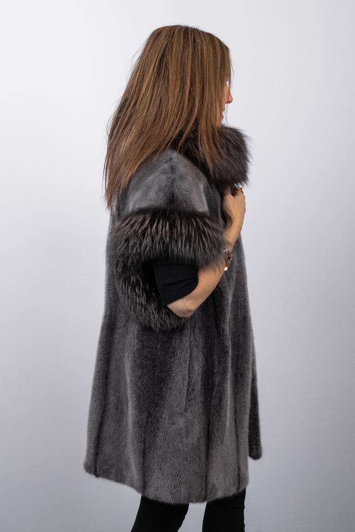 Pewter Cross Mink Vest with Pewter Silver Fox Fur Trim