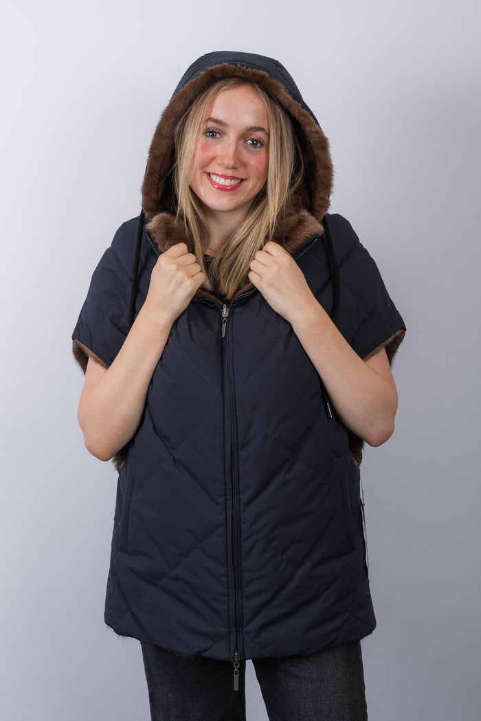 Navy Multi/White Mink/Rabbit/Cashmere Vest