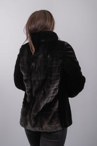 Sleek and sophisticated, this black mink jacket showcases a striking blend of textures for a modern, elevated look. Crafted from luxurious mink, it artfully combines sheared and long-haired mink throughout the piece, creating depth, contrast, and visual interest. Finished with refined keska closures, this jacket offers a seamless, polished silhouette while remaining lightweight and naturally warm—perfect for both day and evening wear.