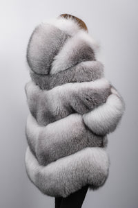 Indulge in unparalleled luxury with this stunning natural shadow frost fox jacket. Plush, thick layers of fox give the piece depth, texture, and character, making it a statement of refined style. Classic keska closures are seamlessly integrated for a clean, elegant finish, while a cozy hood adds warmth and versatility. Perfect for any occasion, this jacket combines comfort, sophistication, and timeless appeal.
