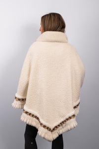 Ivory Alpaca/Wool Cape with Natural Ivory/Toffee/Mocha Mink Fur Trim