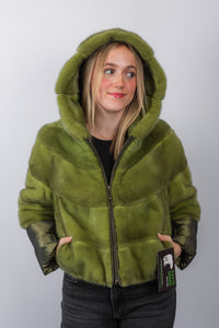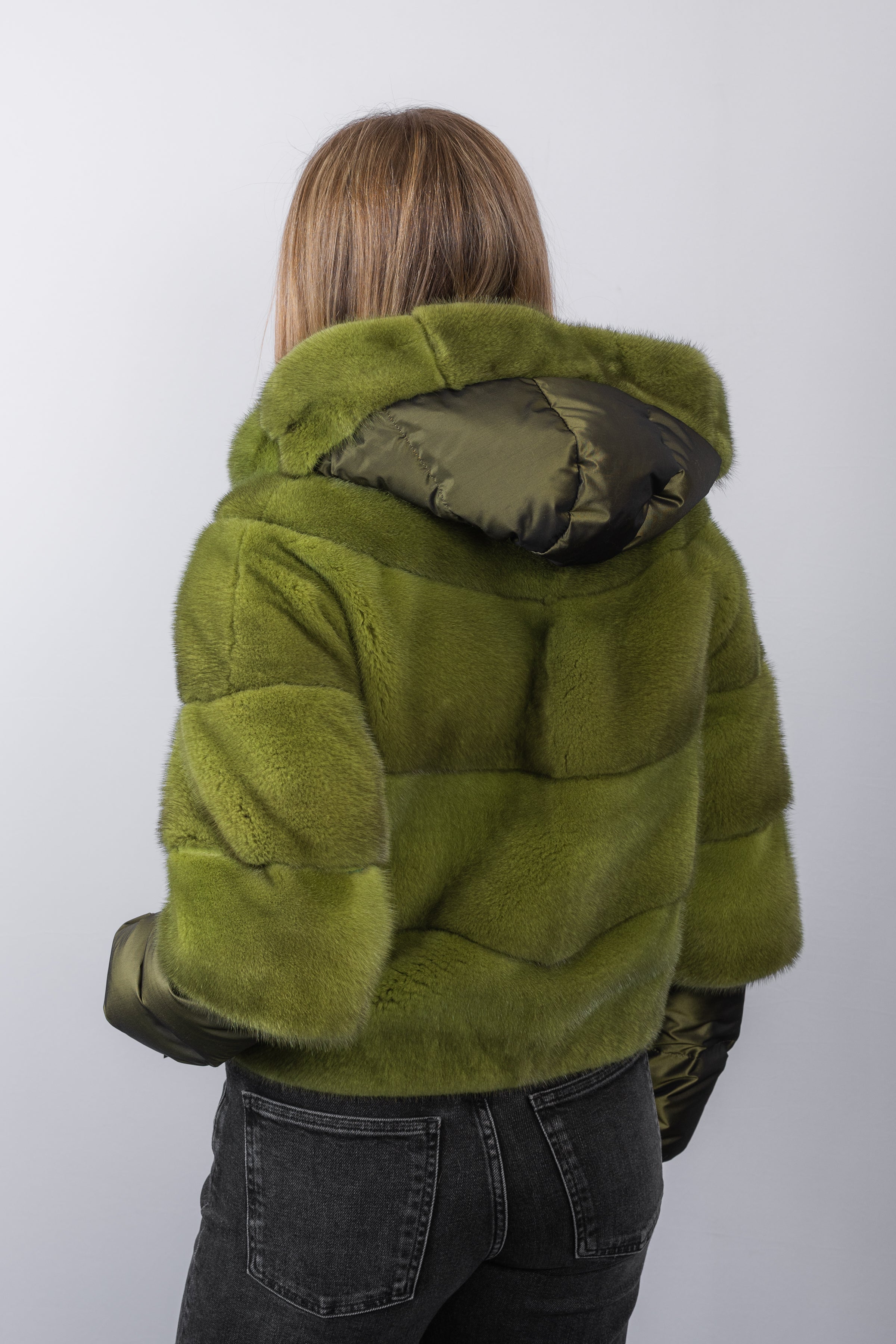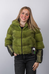 Elevate your outerwear collection with this modern mink jacket that blends luxury with contemporary design. Crafted from silky, luxurious mink, it features distinctive puffer detailing at the bottom of the sleeves for a bold, fashion-forward contrast. The attached hood adds both style and warmth, while the sleek zipper-front closure ensures easy wear. Designed to stand out while remaining effortlessly wearable, this jacket is a versatile statement piece available in a variety of colors.