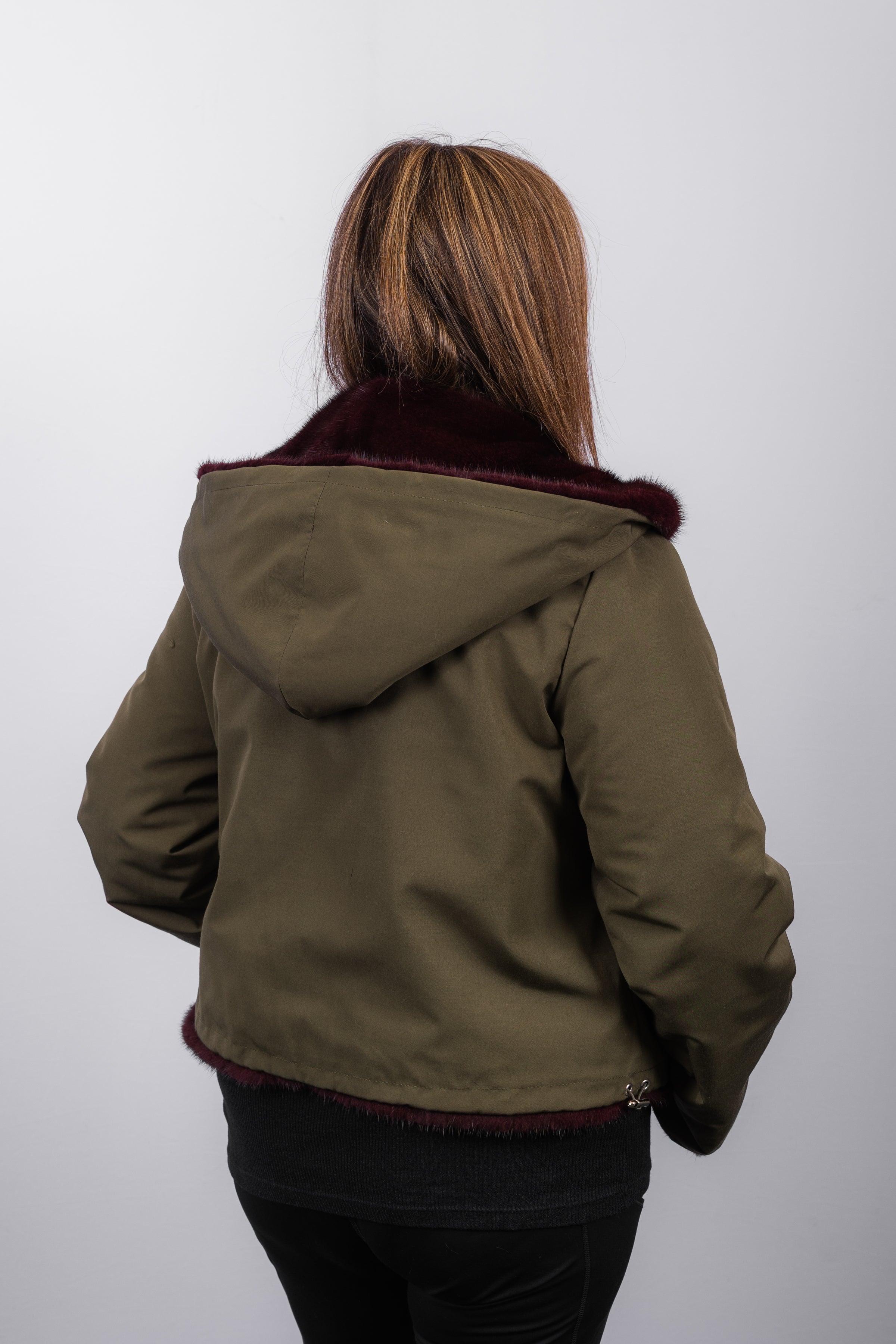 Merlot Mink/Army Green Fabric Jacket