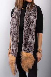 Mocha Snowtop Rex Rabbit Scarf with Amber Frost Fox Fur Trim - Mitten