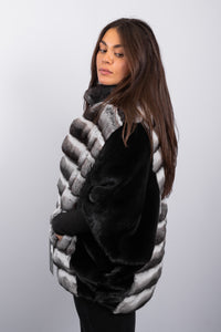 Natural Chinchilla/Black Mink Jacket - 3/4 Sleeve