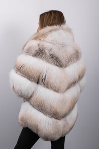 Elegant and sophisticated, this natural Shadow Fawn fox jacket showcases the luxurious beauty of the fur in a timeless design. Crafted from plush, silky Shadow Fawn fox, it features a classic notch collar for a polished, refined silhouette. Finished with seamless keska closures, the jacket offers effortless elegance and natural warmth—perfect for elevating both day and evening ensembles.