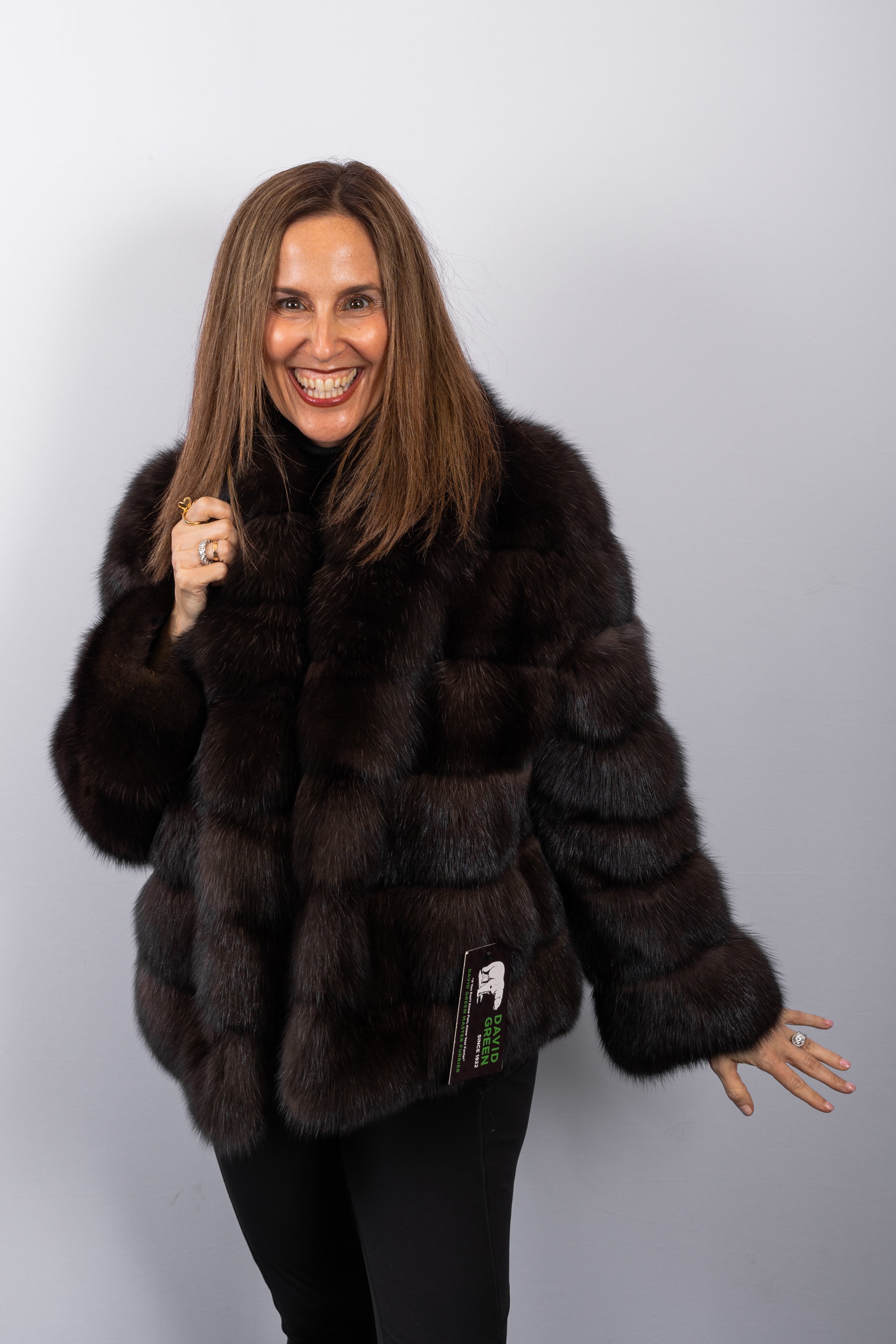 Elegant and impeccably refined, this natural Russian sable jacket is a striking expression of timeless luxury. Crafted from exceptionally plush, silky sable, the design is elevated by a classic tuxedo shawl collar that lends polished sophistication to the silhouette. Finished with discreet keska closures, the jacket highlights the inherent quality of the pelt, distinguished by its naturally beautiful silver-tipped guard hairs. Lightweight yet indulgently warm, it is a statement of understated elegance for both day and evening wear.