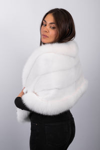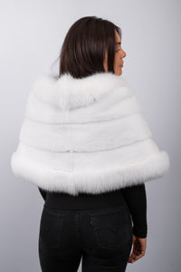 Natural White Mink Wrap with Shadow Fox Fur Trim