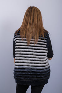 Luxuriously versatile, this reversible vest is a refined statement of texture and craftsmanship. Designed in a navy multi and white palette, it features artfully layered mink and rabbit fur set against a soft cashmere foundation, creating rich depth and visual dimension. The reversible construction offers two distinct looks in one elegant piece, while a sleek zipper closure ensures effortless, functional wear. Timeless yet modern, this vest is an elevated essential for sophisticated layering.