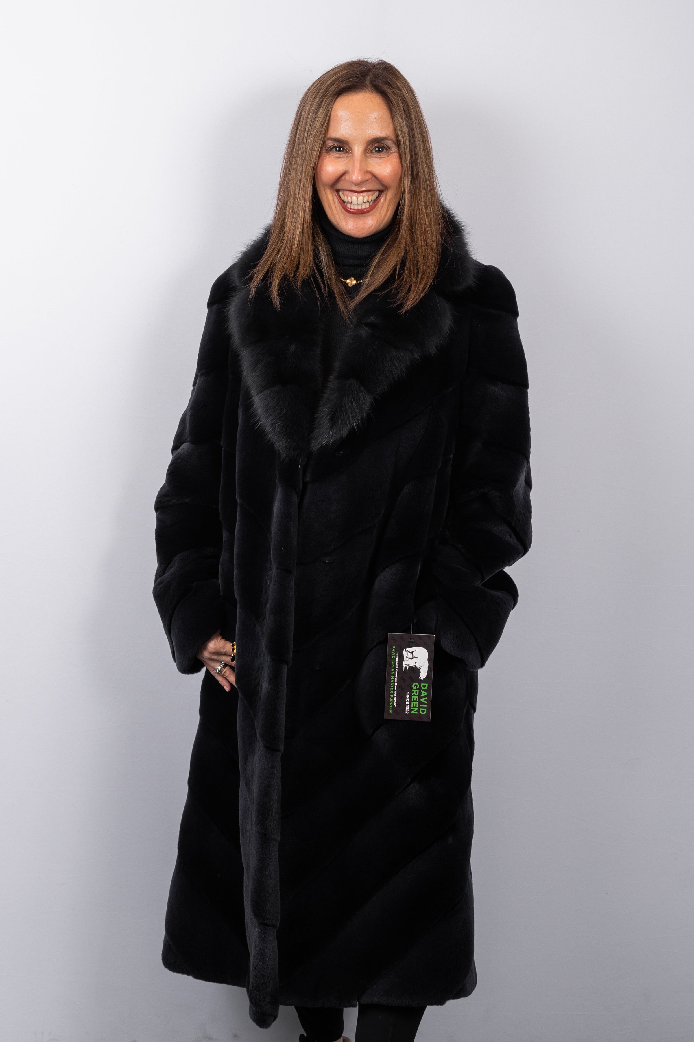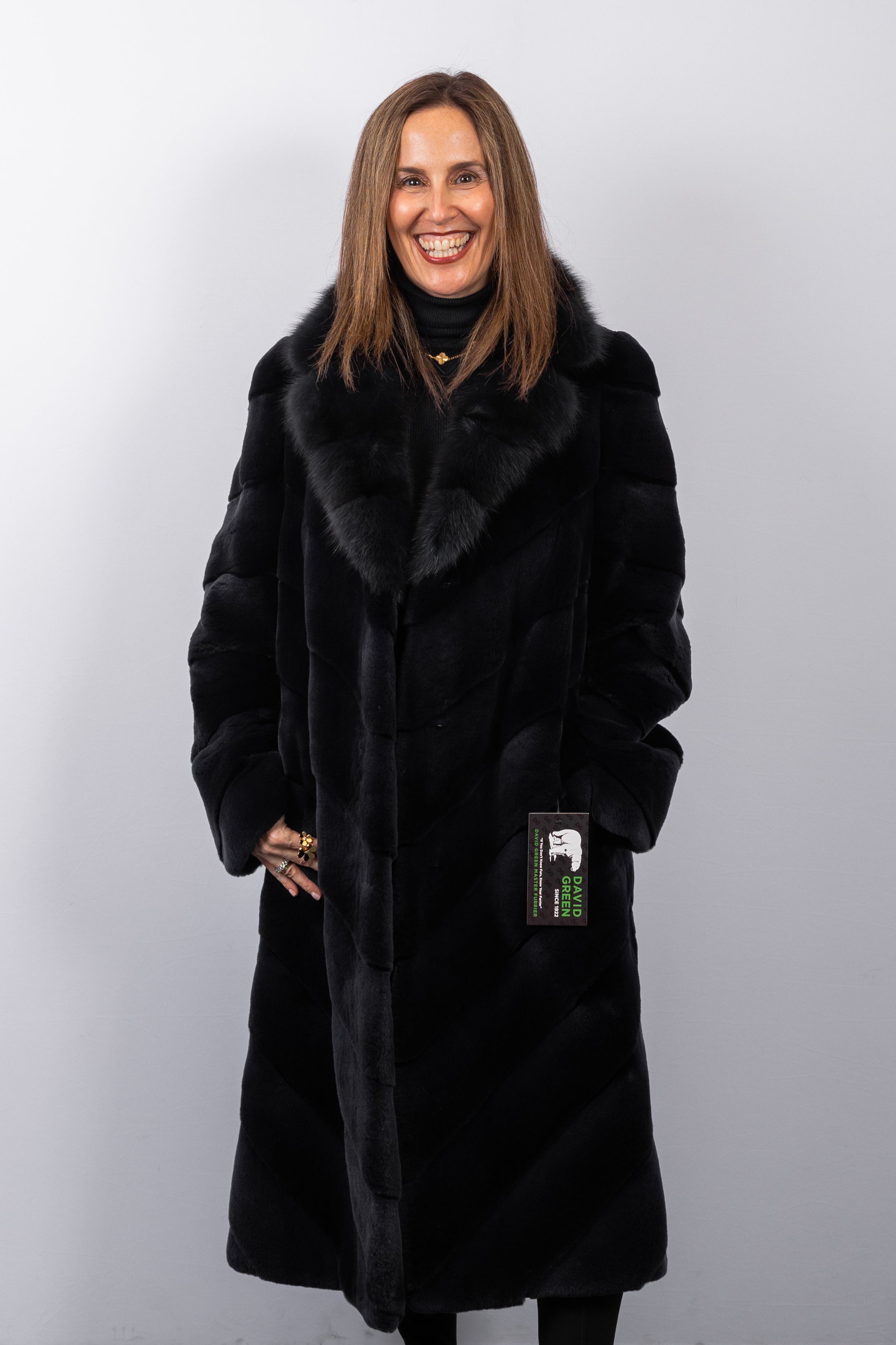 Navy Plucked Mink with Navy Russian Sable Fur Trim