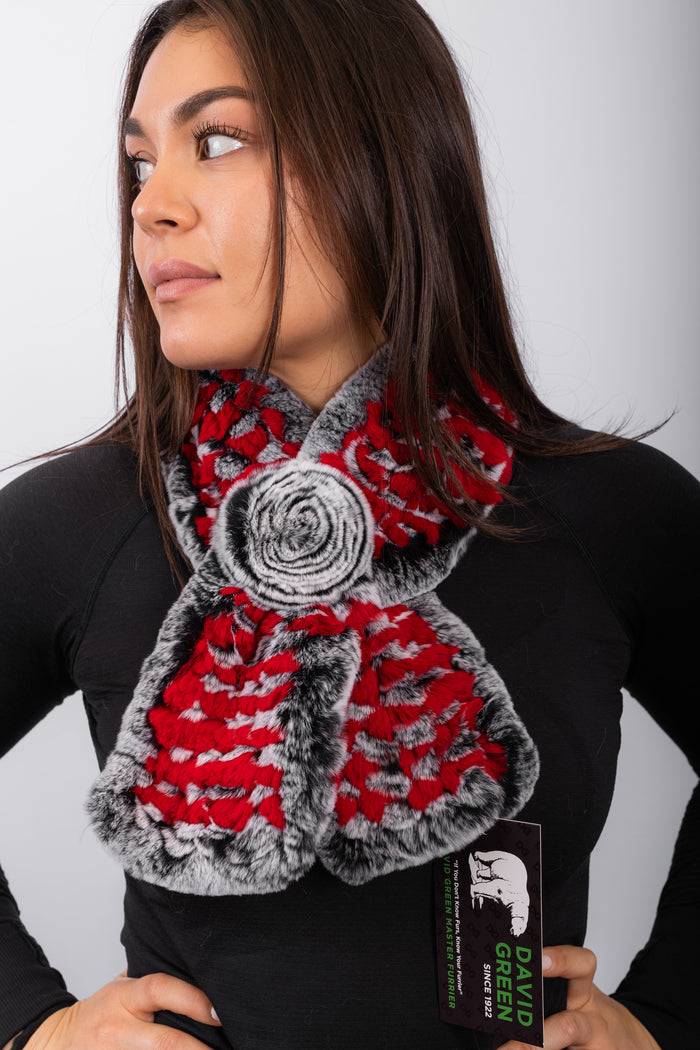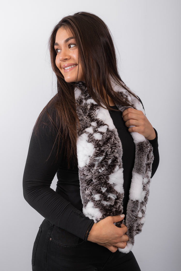 Espresso Snowtop Rex Rabbit Scarf - Rosette