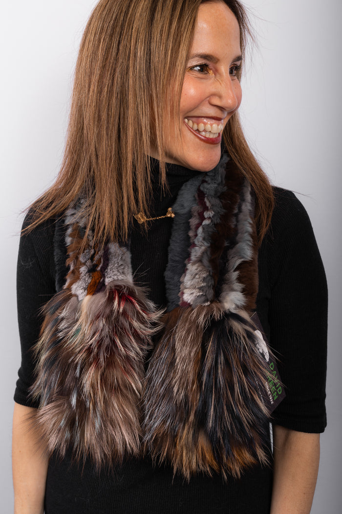 Multicolor Rex Rabbit Scarf with Multi Silver Fox Fur Wisps