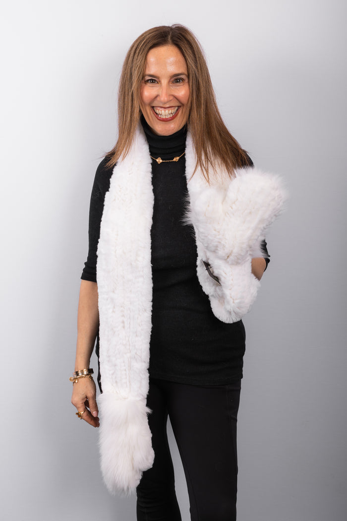 White Rex Rabbit Scarf with White Fox Fur Trim - Mitten