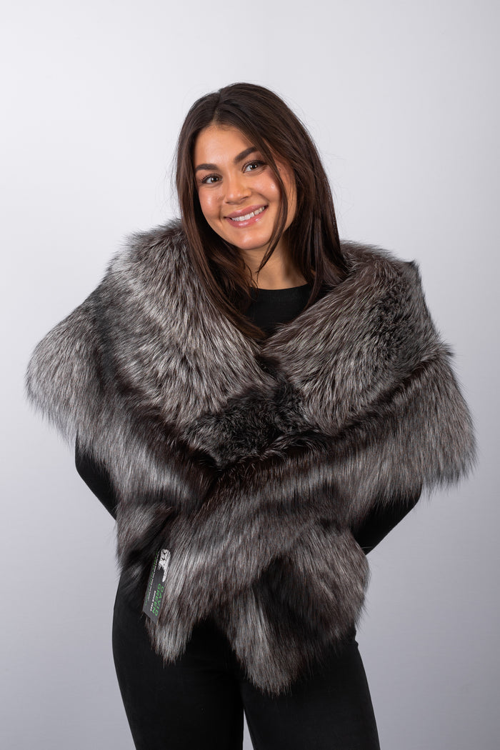 Natural Silver Blue Cross Mink Wrap with Shadow Fox Fur Trim