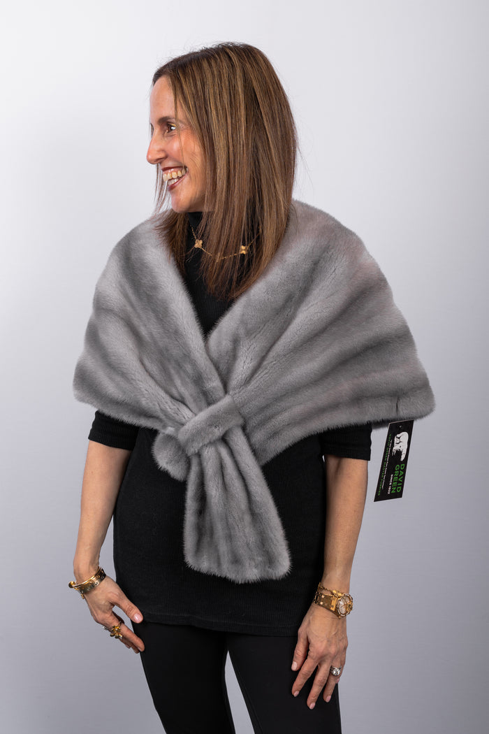 Natural Blue Iris Mink Wrap with Indigo Fox Fur Trim