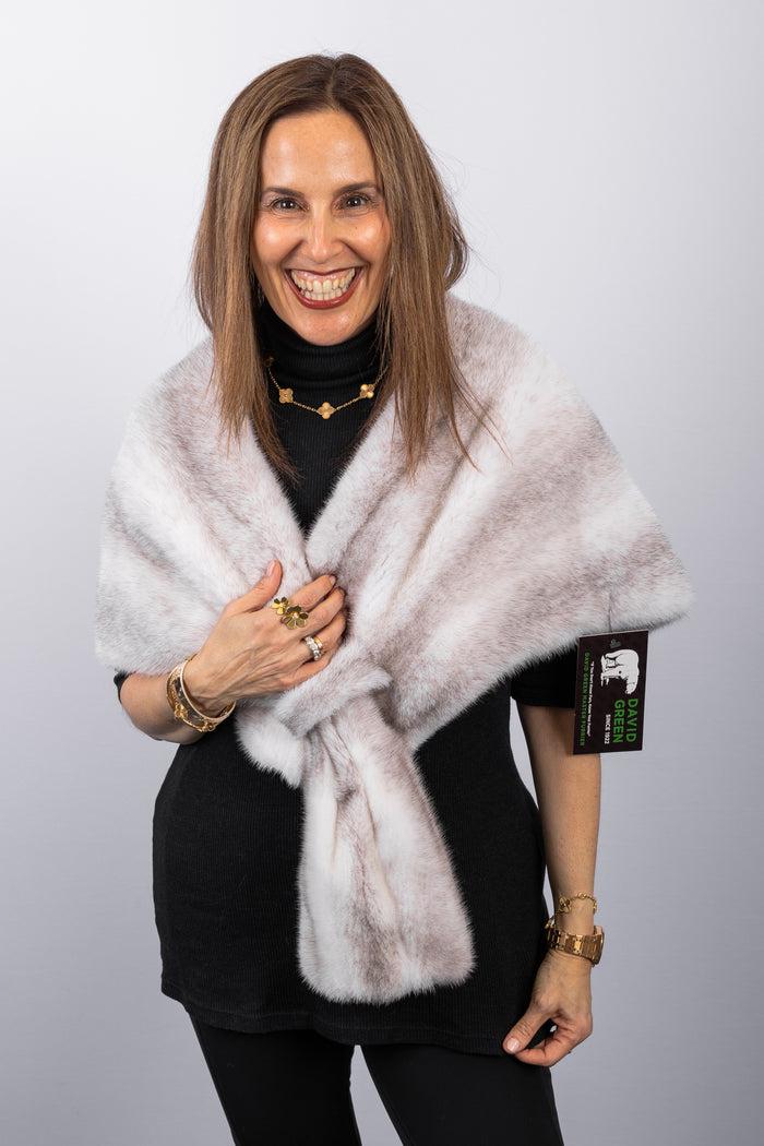 Natural White Mink Wrap with Shadow Fox Fur Trim