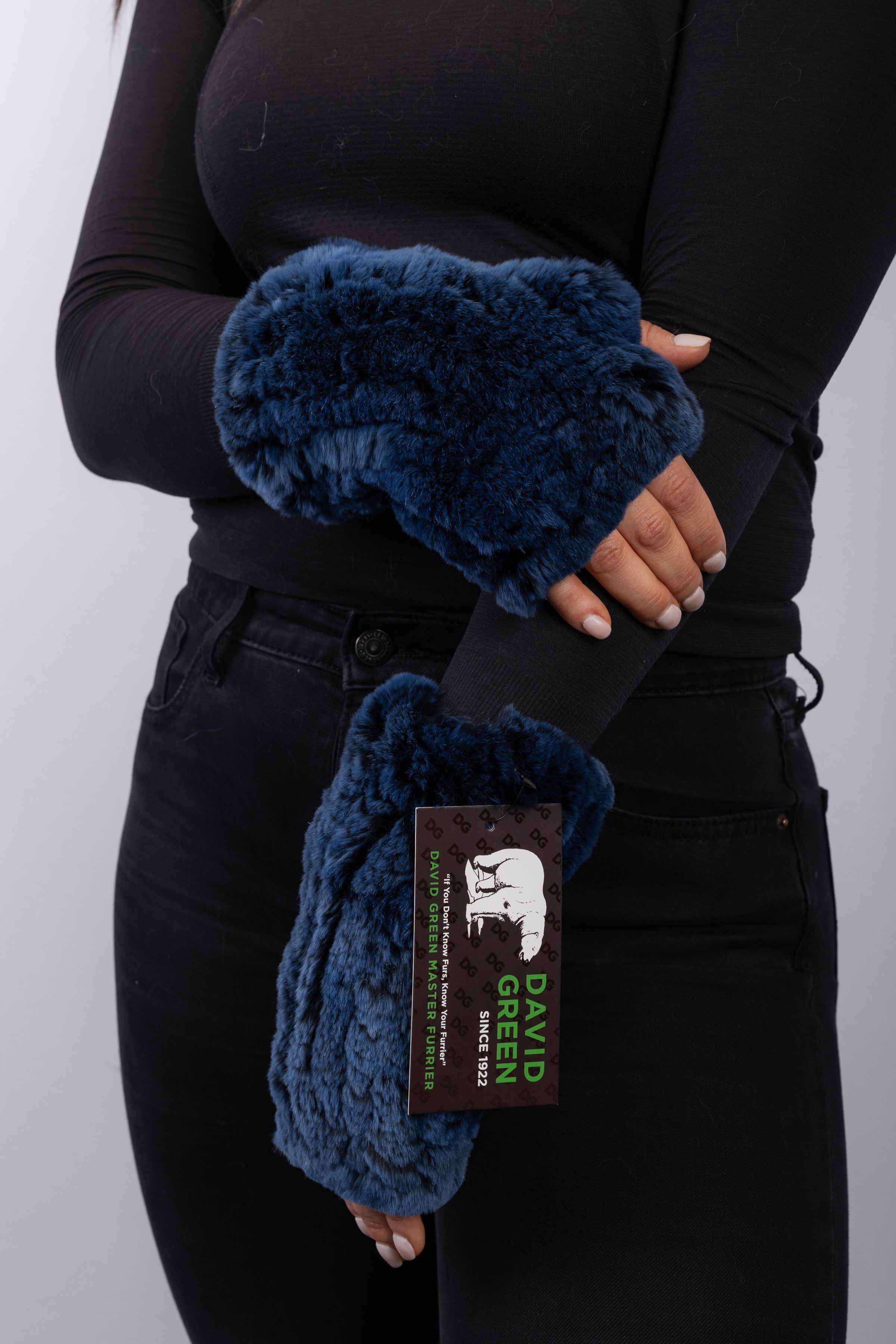 Antique Cobalt Rex Rabbit Fingerless Gloves