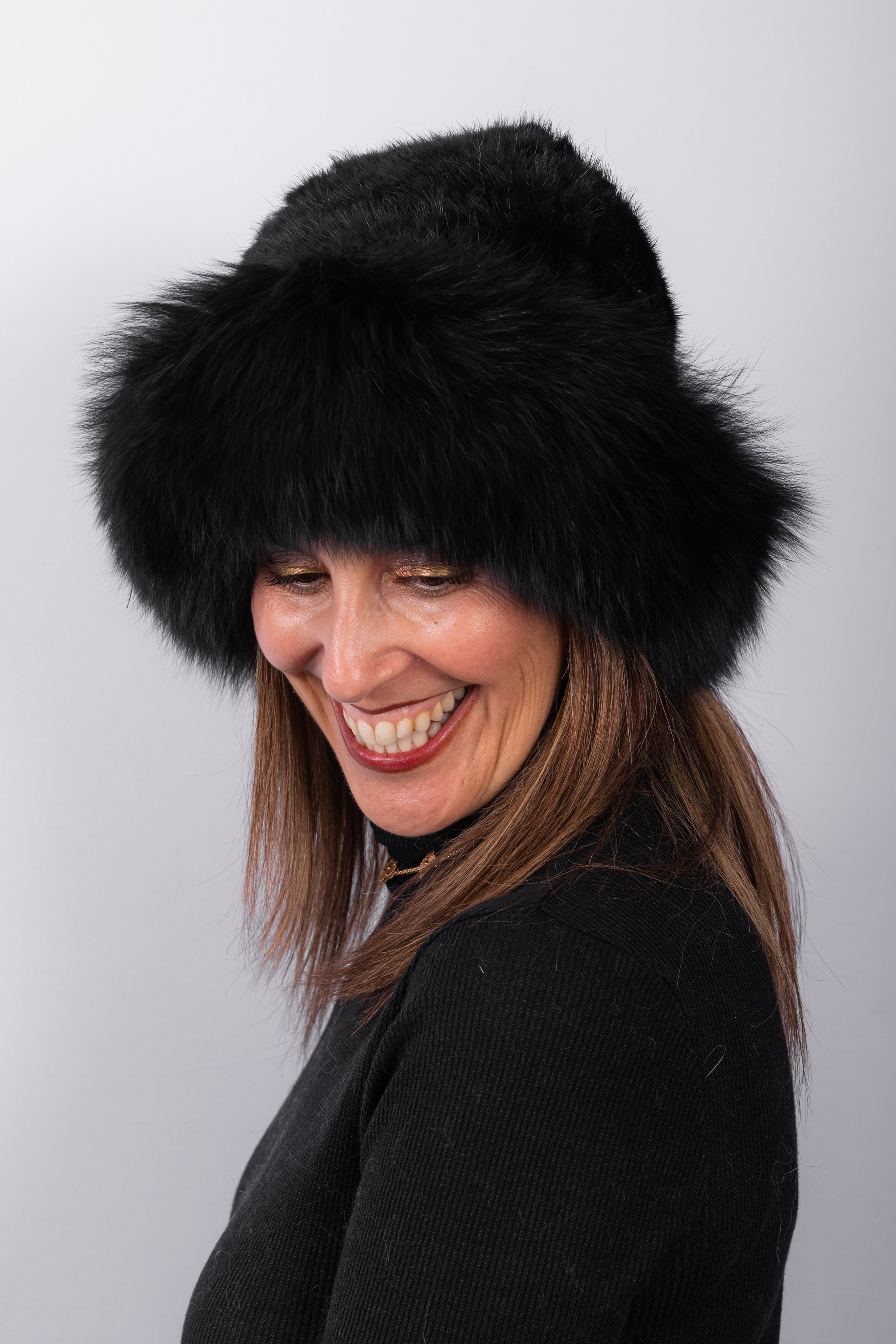Black Mink Hat with Black Fox Fur Trim - Traditional Style