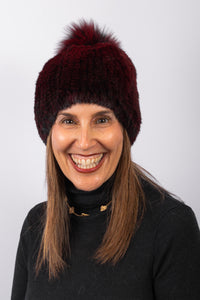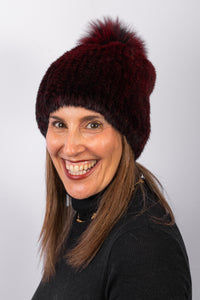 Hit the slopes with this fun hat. The stretch in the knit allows for comfort as well as adjustable sizing. The fox pom pom pairs nicely with the texture of the mink. This chic look is a great gift item for all ages.