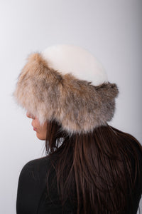 Natural White Mink Hat with Lynx Cat Fur Trim