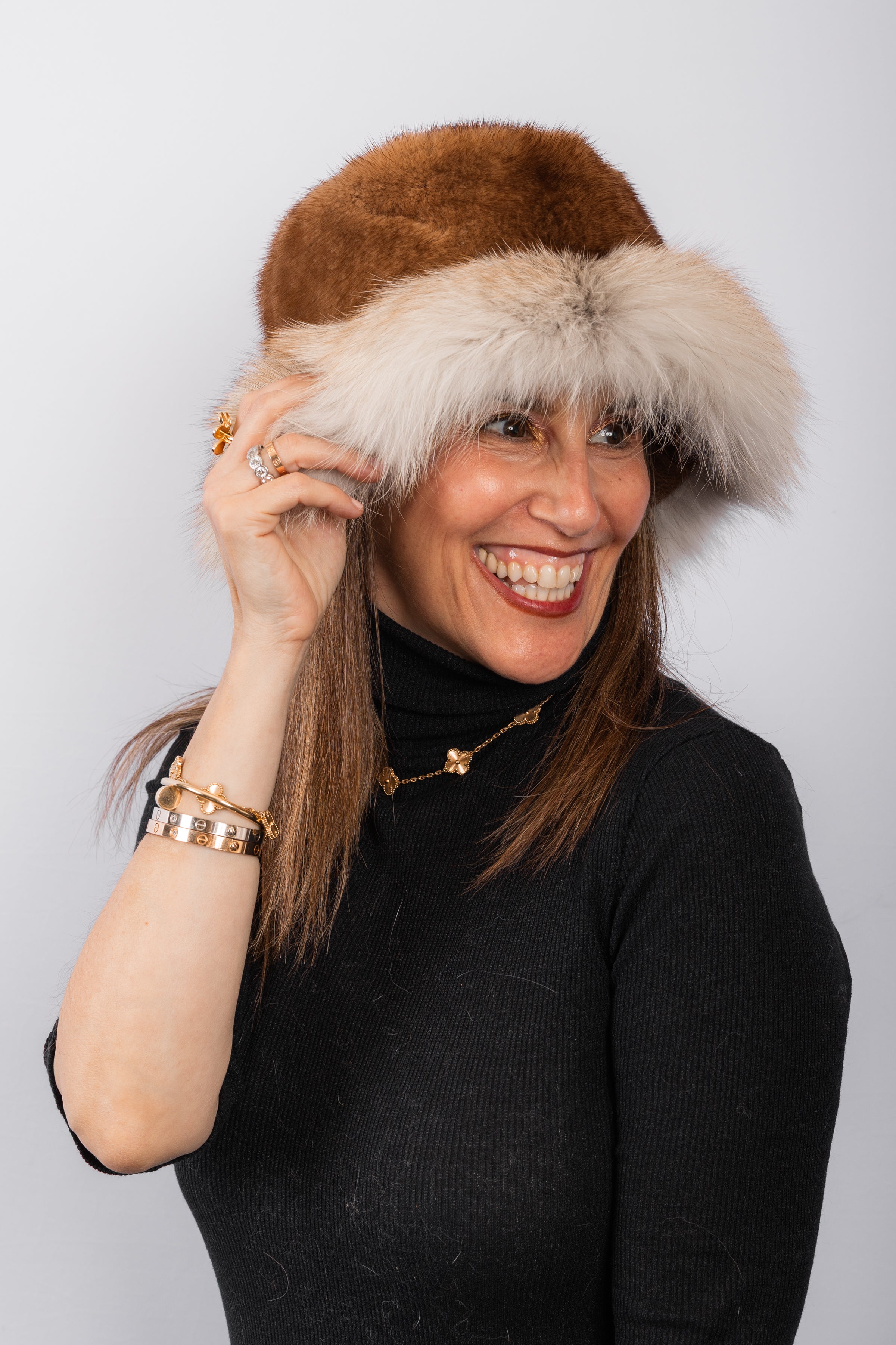 Whiskey Mink Hat with Golden Fox Fur Trim
