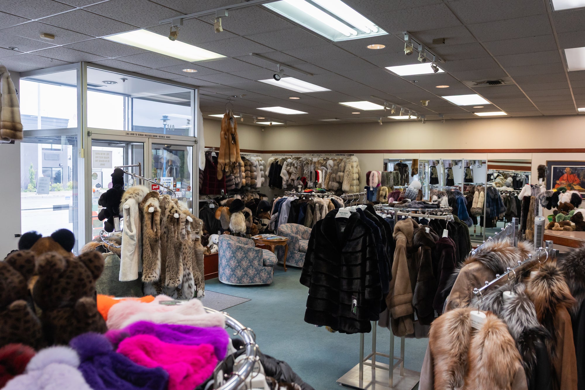 Our showroom displays over 400 fur coats across a broad range of styles and fur types. Beyond the showroom, our secure on-site vault holds more than 2,500 additional garments, giving customers access to an unmatched selection.
